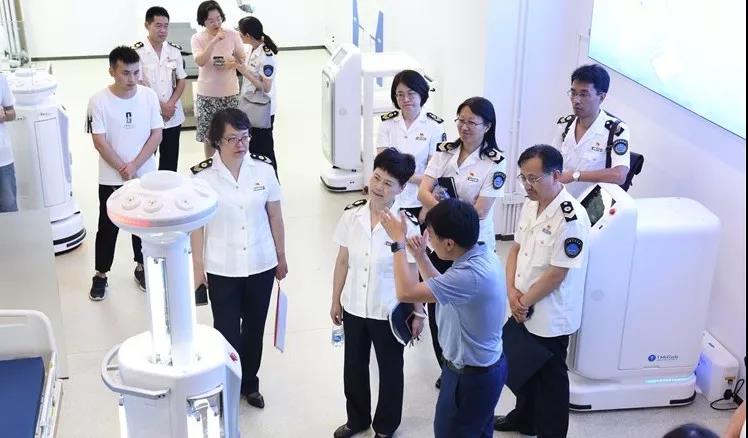 隨后來到上海鈦米機器人科技有限公司產品中心參觀,公司工作人員詳細介紹了包括智能消毒機器人、自動導引式放射性核素治療患者檢測系統、特殊藥品管控機器人等在內的多款機器人產品,并現場進行了產品演示。