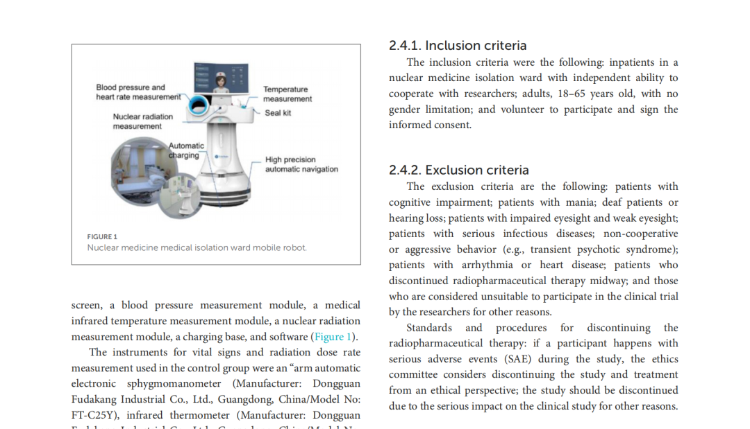 關于鈦米核醫學病房機器人的臨床研究在國際學術期刊《 Frontiers in Public Health》發表