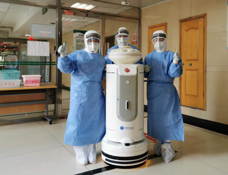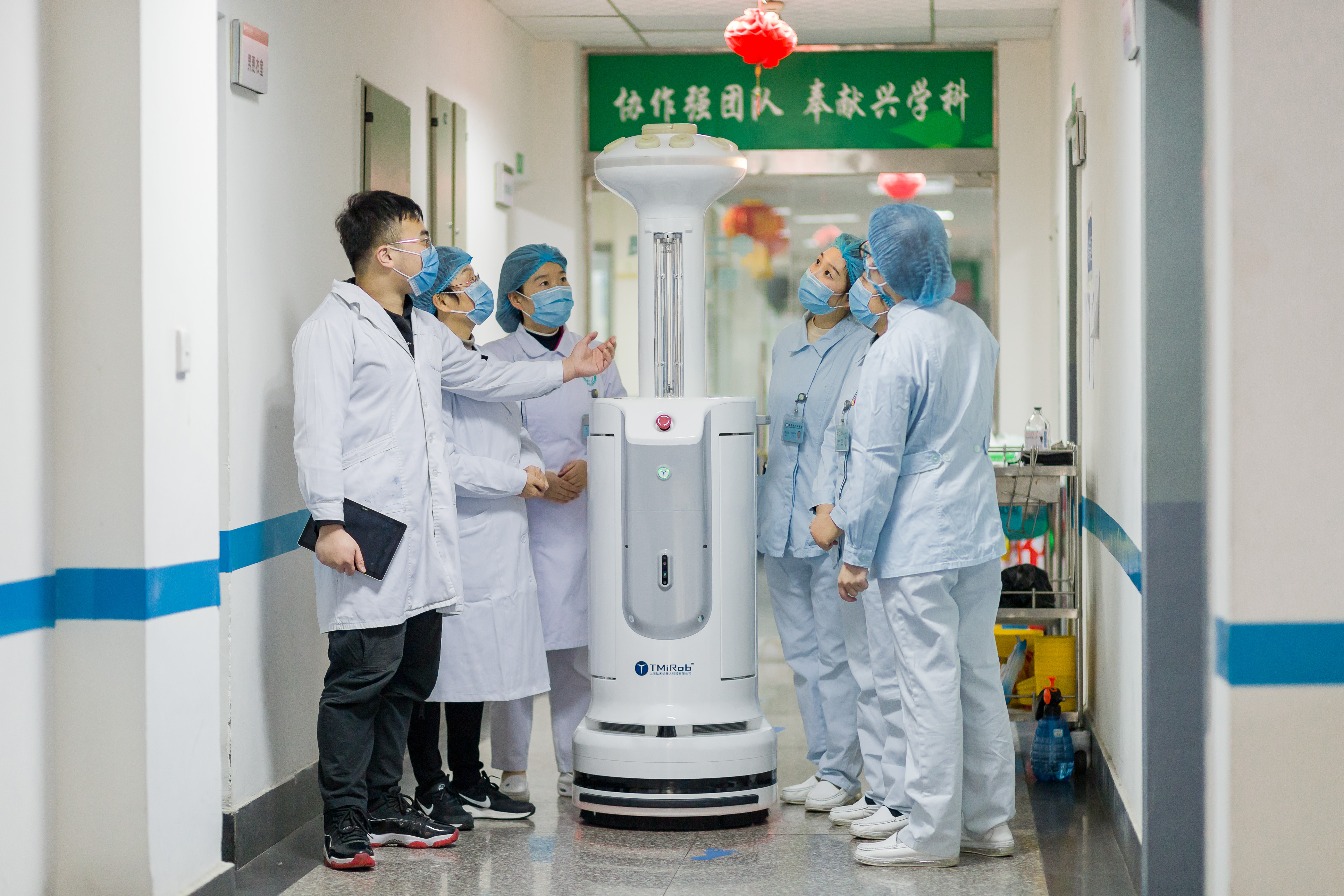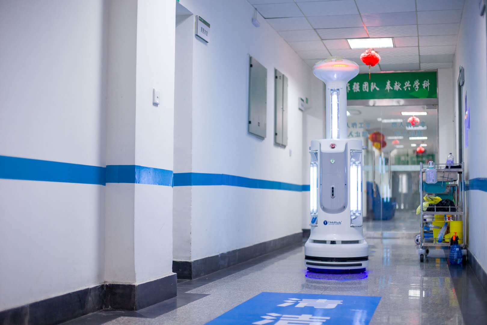 上海市經濟信息化委組織本市人工智能企業支援上海援鄂醫療隊,鈦米機器人入住武漢方艙醫院,提高醫療物資配送機能